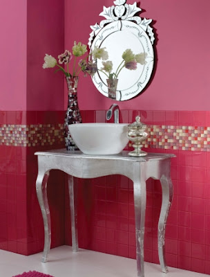Açık pembe cam banyo tezgahı,banyonuza hem şık hem feminen bir hava katacaktır.